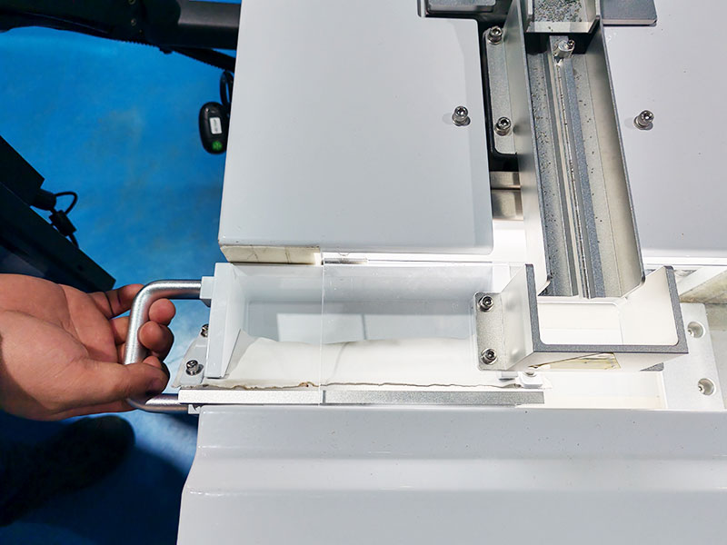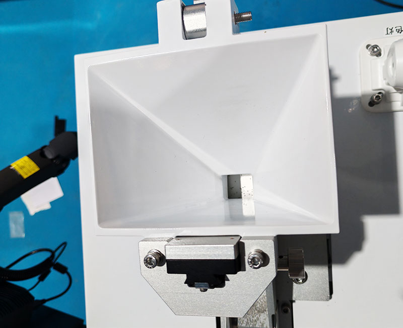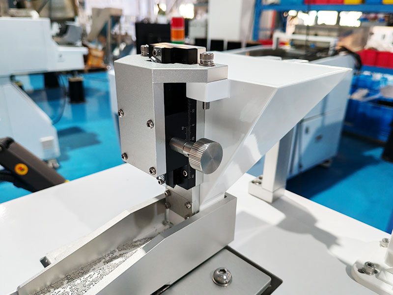 2.集料盒距離落料口70mm,并且集料盒有布擋簾做緩沖,有效保護(hù)電容不受損