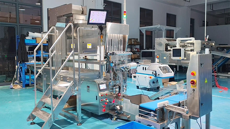 3.數(shù)好的產(chǎn)品落入包裝機進行裝袋封口,再落至成品輸送機,運送至復(fù)檢秤皮帶上。